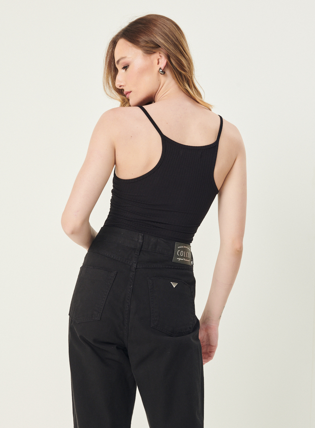 Regata apresenta shape super slim em modelagem comfort. A peça possui alças finas, decote traseiro halter neck e logo da marca bordado na altura do busto.