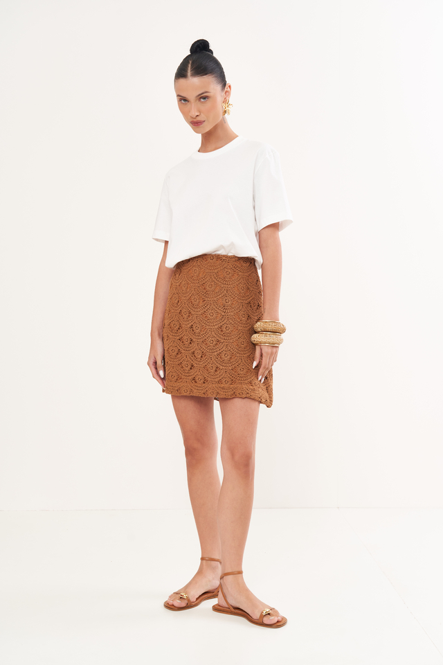 A Saia Reta em Renda é uma celebração do trabalho artesanal, uma das assinaturas da coleção Riviera. Sua textura rica e design sofisticado contam histórias e refletem a energia vibrante da temporada. É a peça perfeita que une a leveza do algodão com um visual inovador e despojado, ideal para viver os dias ensolarados com autenticidade e um toque de romantismo.
